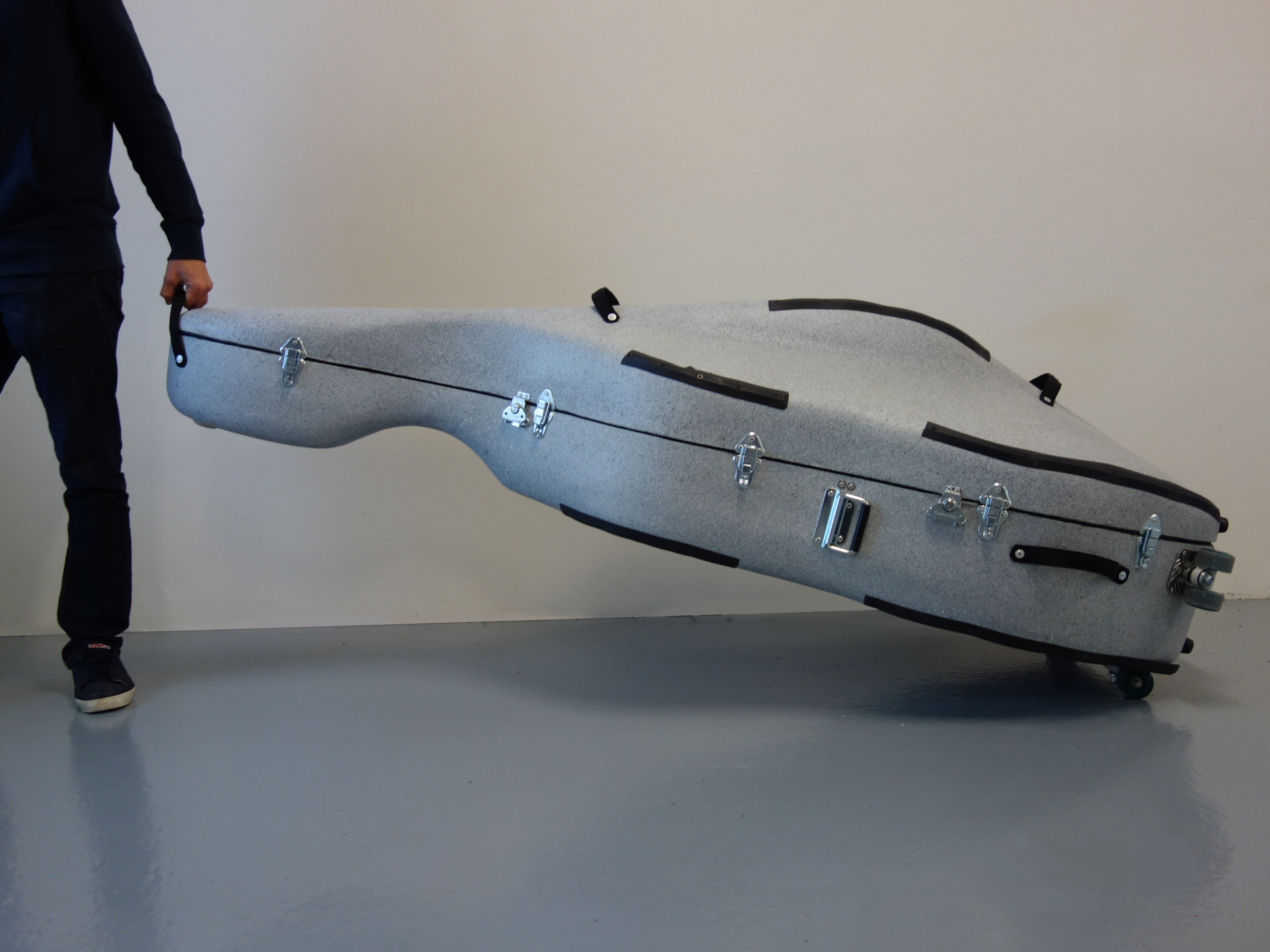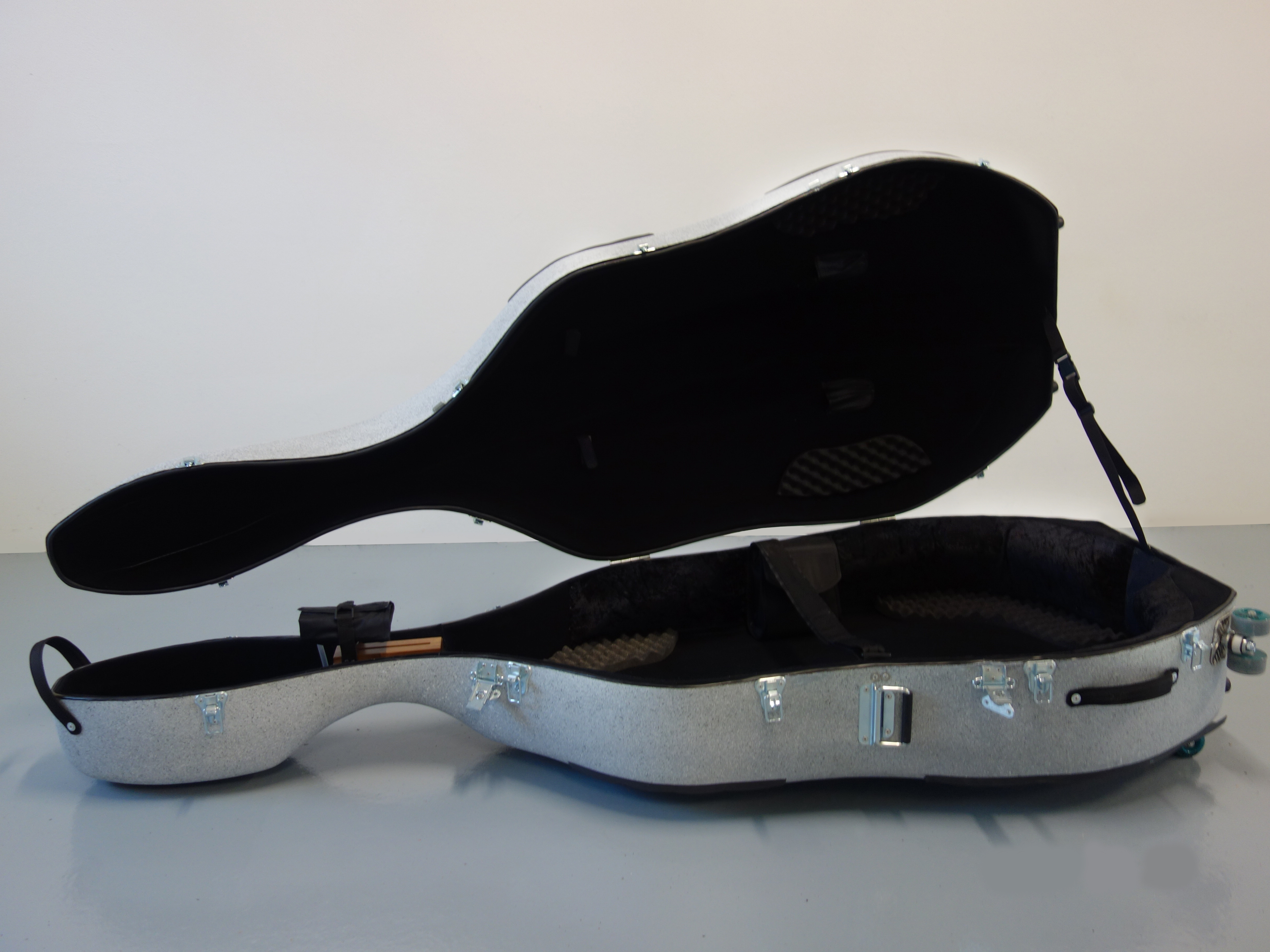It is difficult to get a good hard case for the double bass. The widest range of double bass cases are the soft cases that do not protect the instrument from impact. Our double bass case is a quality compromise of strength, water resistance and thermal insulation properties that protect your instrument while being lightweight. These features cause constant moisture inside the case and your instrument is thus perfectly protected. The double bass case is also equipped with a roller, so you don't have to worry anymore.